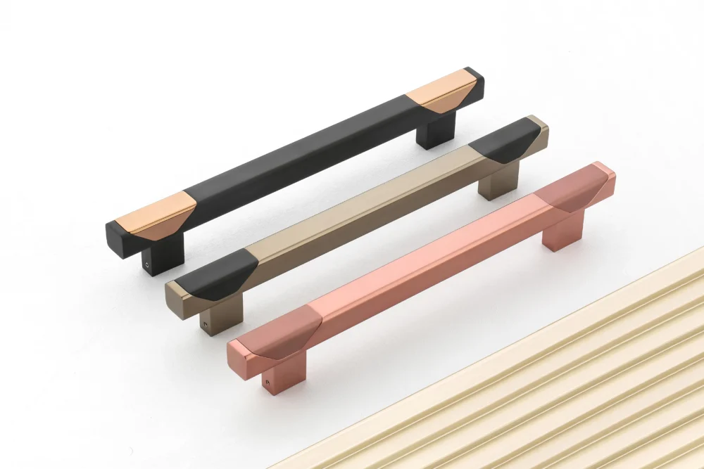 Modern aluminium handle with gold and matt black shades.
