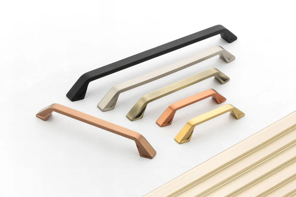 Combining PVD and antique textures, GH-3128 handle balances modern shine with vintage tones. Available in multiple finishes for diverse interior styles.