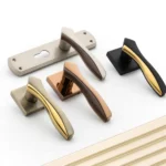 Elegant zinc handle with gold and wengy tones.